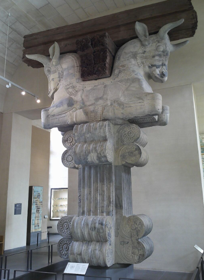 Ένα από τα πιο σημαντικά ευρήματα από το παλάτι στα Σούσα είναι ένα τεράστιο κιονόκρανο σε σχήμα ταύρου. Έχει ύψος 5,3 μέτρων, υπολογίζεται ότι η ανέπαφη στήλη θα είχε ύψος περίπου 21 μέτρα. Αυτές οι ογκώδεις στήλες προορίζονταν να υποστηρίξουν ογκώδεις κατασκευές. Η συγκεκριμένη στήλη ήταν από την απάντανα, ή αίθουσα ακροατηρίου, του παλατιού.